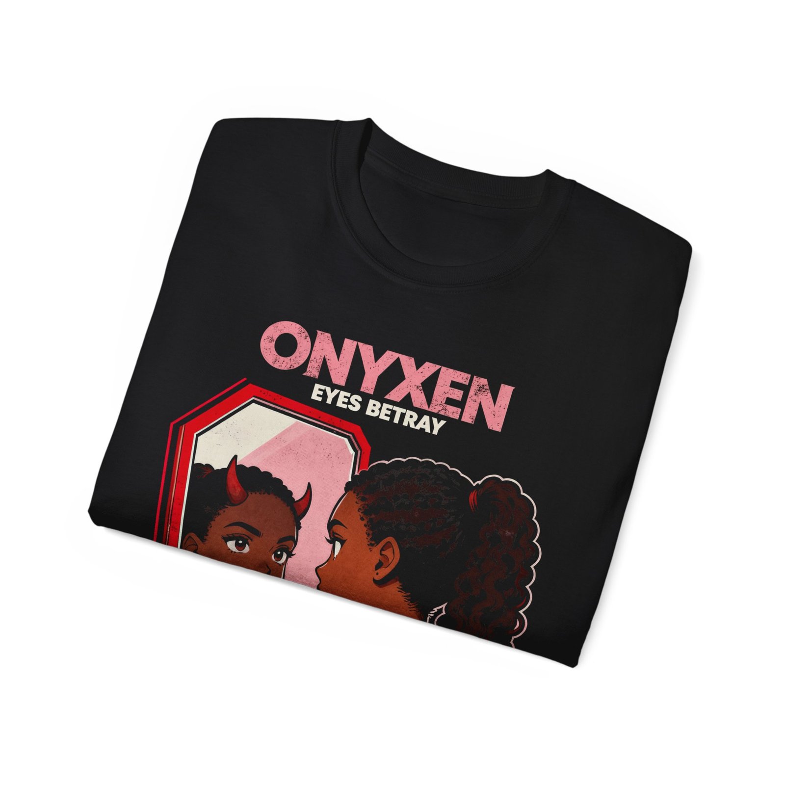 Step into the world of ONYXEN with our unique 'Eyes Betray' black anime shirt, featuring a captivating design that merges black anime culture with urban streetwear. The tee showcases a black anime girl looking into a mirror, symbolizing self-reflection and inner strength. With its high-quality material and authentic graphic, this tee is a must-have for fans of anime, hip-hop, streetwear.